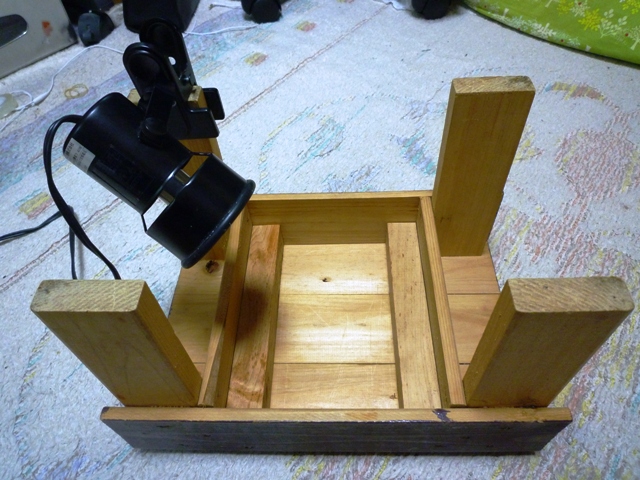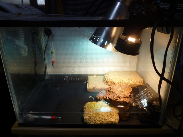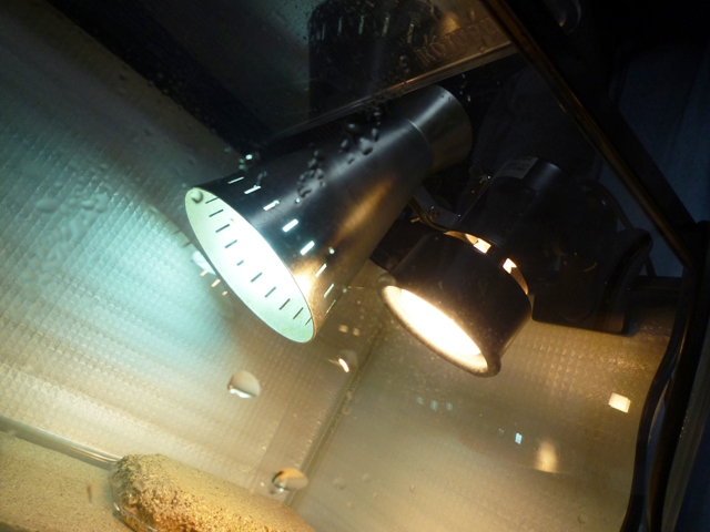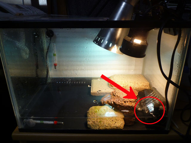 夜間は上部を2/3塞ぎ、赤外線ライトを使うことで26℃以上をキープしてますが、昼間に既に使用済みの2種のライトに加え赤外線ライトまで設置するほど上部に空間面積がりません。