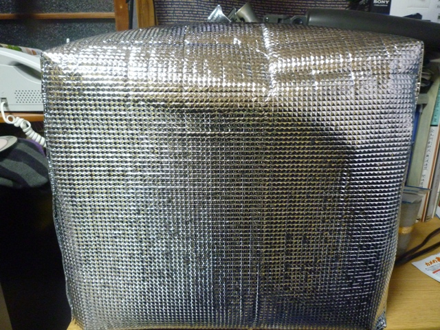 保温シートを水槽のかたちに成形し、すっぽり覆ってます。