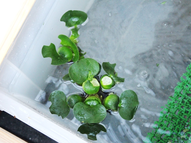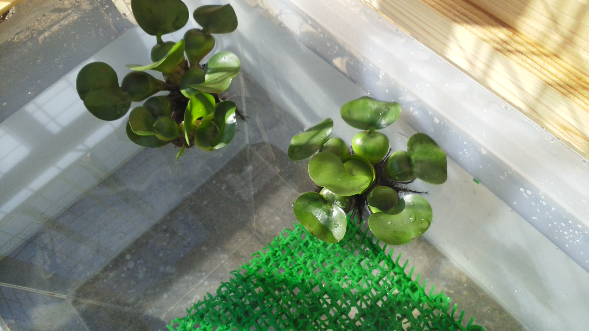 餌は控えているひなたさんですが、浮かべているホテイアオイを齧りまくってるので、そのカスや糞(?)が少しばかり溜まってます。
