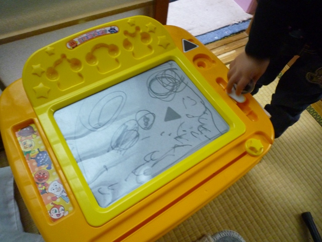 娘に誕生日の時に落書きデスクなるものを買ってあげていたんですが、なにやらそれにせっせと書き込んで、私のもとに持ってきたとき、私は心の中で娘に謝りましたね。