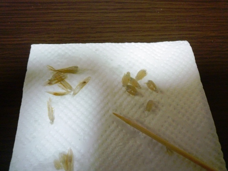 上手くいったとしてもたった3粒ですが、1日の餌が生海老の身だけよりは幾分かでも他の栄養が入るに越したことはありません。