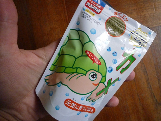 この時使用していたのは近所のナフコにあったオリジナルブランドの安い亀用の餌でした。
