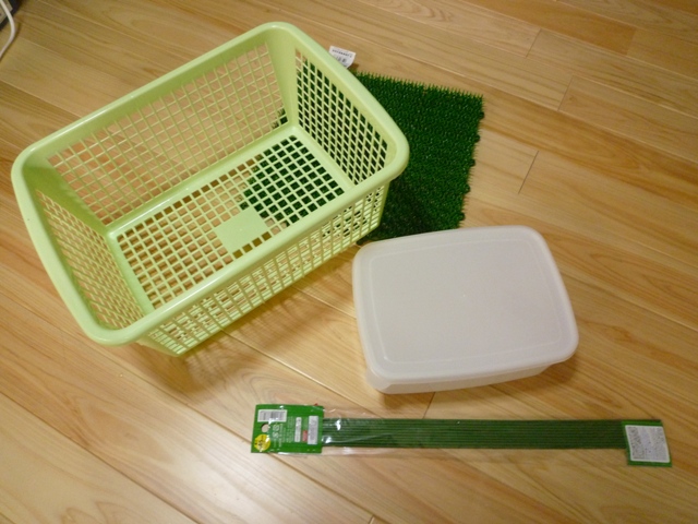 買ってきたのは中サイズのプラ製カゴにプラ容器