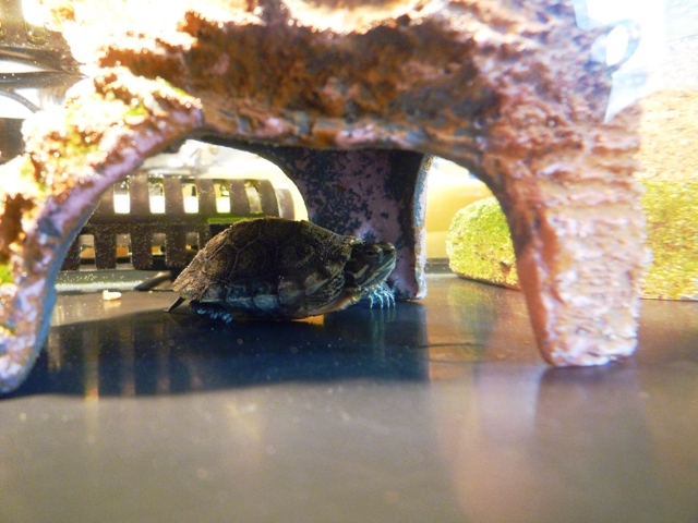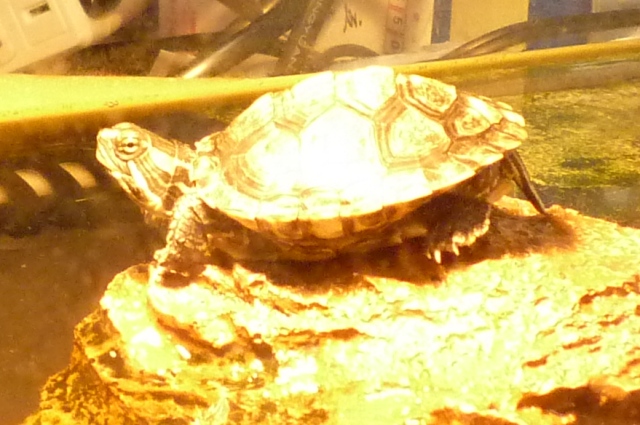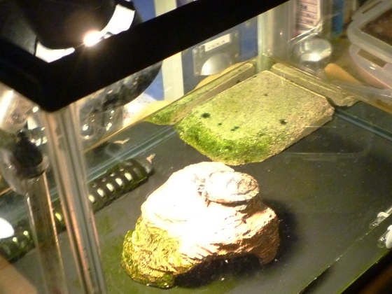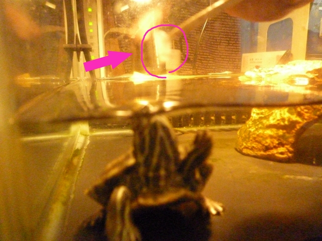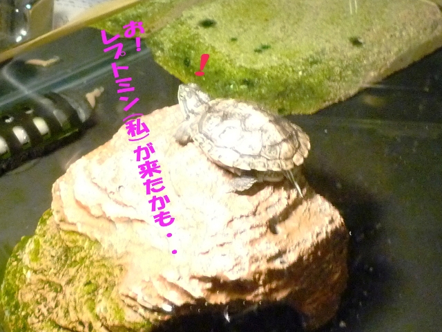 亀さんが陸地でお日様もしくはライトに当たり実に気持ち良さそうにくつろぐあれですが、以前は普通にその姿を見せていたひなたさん・・・・