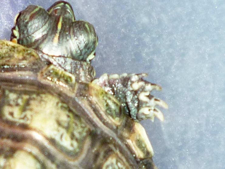 幅広くなった成長線と、剥がれたがっている甲羅・・・