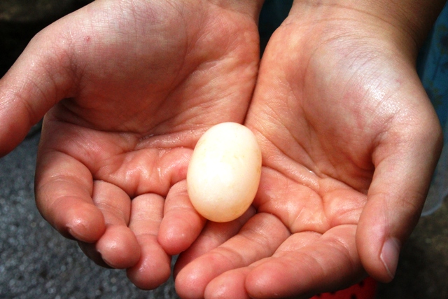 離れて観察していることと、ひなたさんの後ろ脚のせいでほとんど卵は見えませんでしたが、これまた約30分ほどかけて産み続けました。